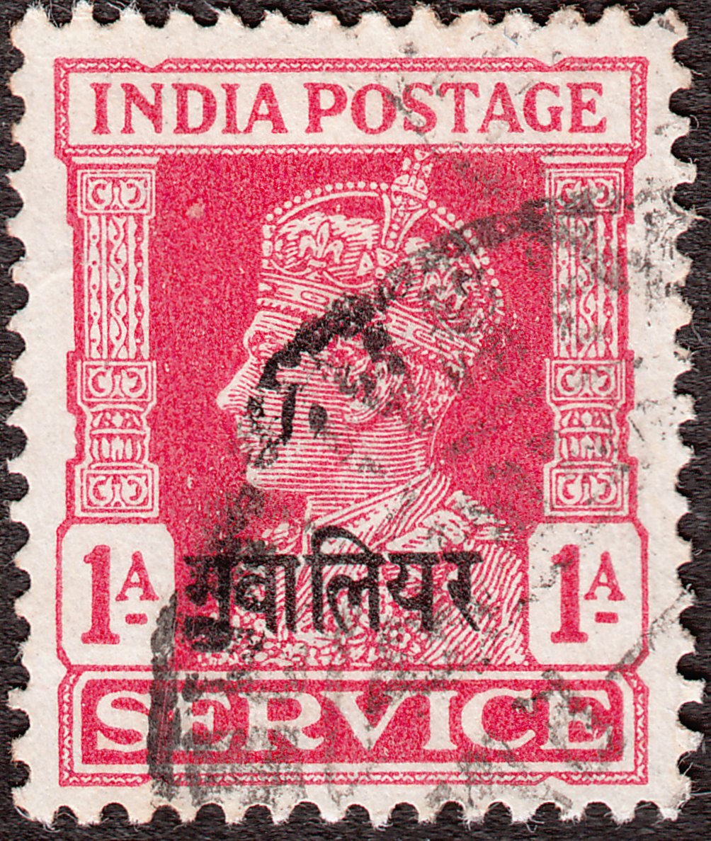 Die Dienstmarke Indien MiNr. D 106 wurde am 08.07.19402 mit Aufdruck GWALIOR in Devanagari-Schrift als Gwalior Dienstmarke MiNr. D 52 herausgegeben: