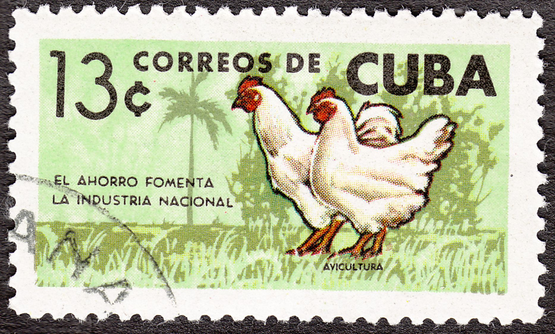 Der in diesem Erinnerungsstempel der UNPA verewigte Hahn steht in Essen auf dem Kurienplatz.