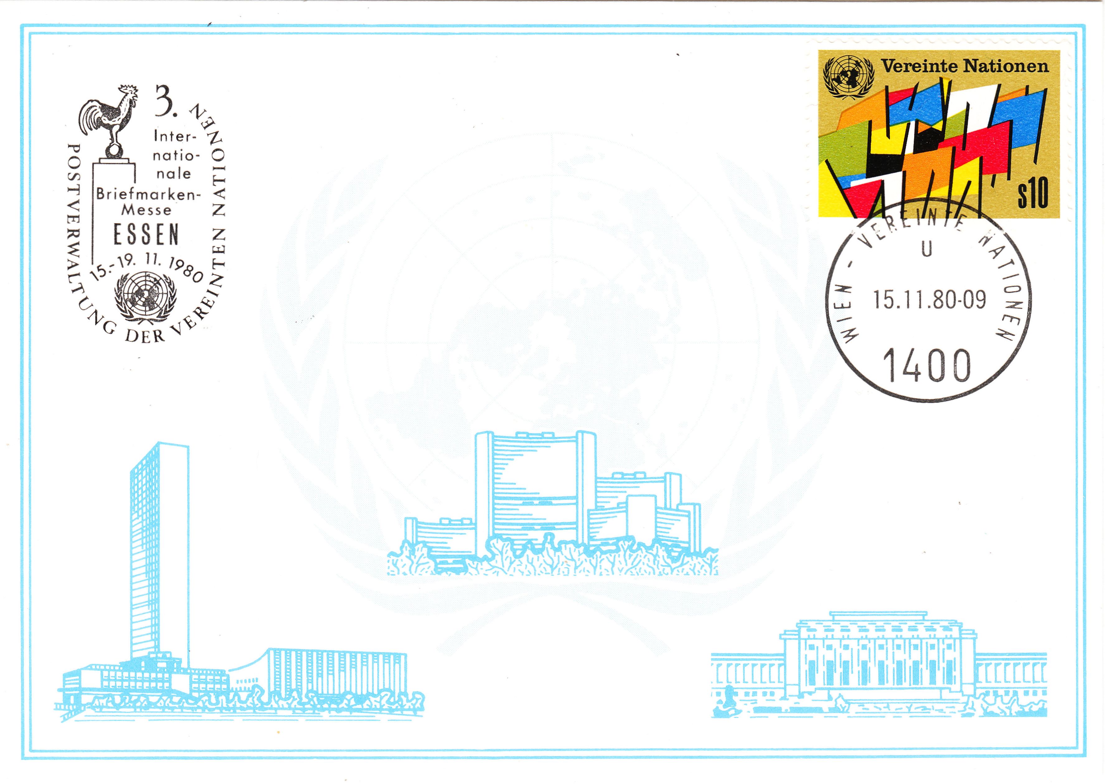 Die Postverwaltung der Vereinten Nationen = UNPA in Wien beteiligt sich seit 1980 an regionalen, nationalen und internationalen Briefmarkenausstellungen und setzt für jede Ausstellung einen speziellen Erinnerungsstempel ein. Dieser Erinnerungsstempel darf nicht zur Entwertung von Postwertzeichen oder Wertstempeln verwendet werden, sondern wird als Nebenstempel auf Sendungen aller Art abgeschlagen.