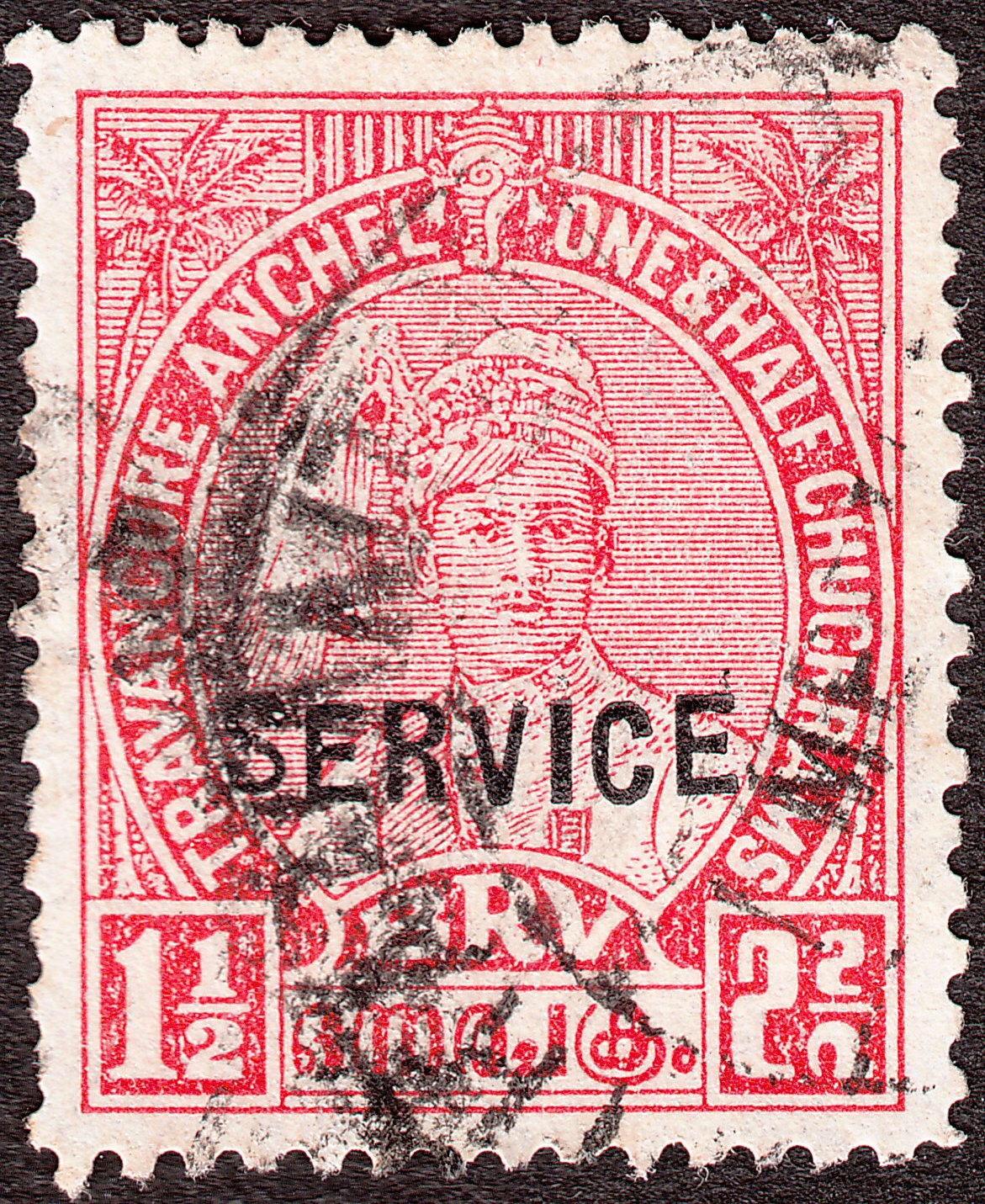 Die am 09.11.1939 zum 27. Geburtstag des Maharadschas Sir Bala Rama Varma X. erschienene Sonderausgabe wurde am selben Tag mit schwarzem Aufdruck "SERVICE" versehen als Dienstmarke ausgegeben.