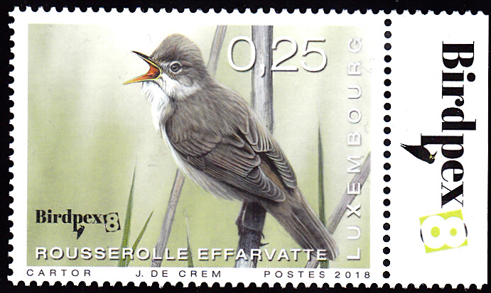 Auf dieser Marke aus Benin (MiNr P 1232) wird ein Blaßspötter (Iduna pallida; vorher: Hippolais pallida) gezeigt.