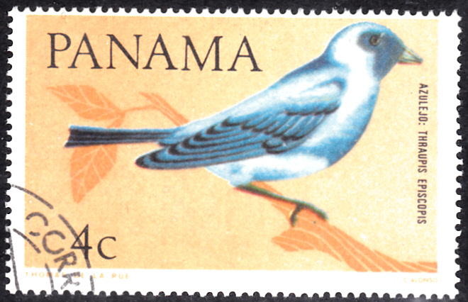 Eine weitere Blautangare (Thraupis episcopus) können wir auf dieser Marke aus Panama (MiNr 847 A) bewundern.