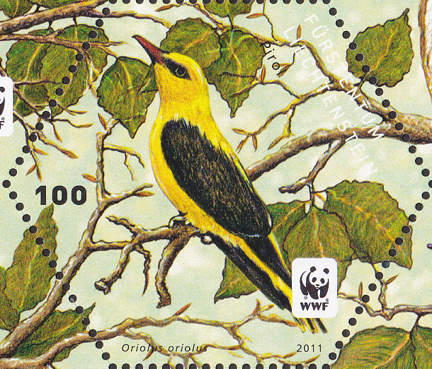 In Liechtenstein ist diese Marke (MiNr 1600) mit einem Pirol (Oriolus oriolus) erschienen.