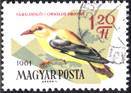 In Ungarn erschien in einer Serie "Einheimische Vögel" diese Marke (MiNr 1232) mit einem Pirol (Oriolus oriolus).