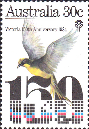 Diese Marke mit dem Gelbstirn-Honigfresser wurde mit dem zweiten Wert der Ausgabe "150 Jahre Besiedelung von Victoria" als Paar zusammenhängend gedruckt. Hier ein Paar dieser beiden Marken.
