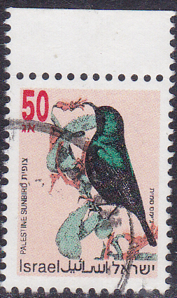 Ergänzend zu der hier gezeigten Marke aus Israel (MiNr 1384) zeige ich noch eine bildgleiche Marke aus der Freimarkenserie "Singvögel" (MiNr 1257) mit dem Jerichonektarvogel (Cinnyris osea).