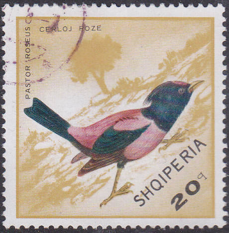 Diese Marke aus Albanien (MiNr 1322) zeigte einen Rosenstar (Sturnus roseus).