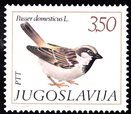 In Jugoslawien ist diese Marke (MiNr 1925) mit einem Haussperling (Passer domesticus) erschienen. Gezeigt wird hier ein Männchen.