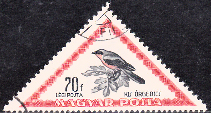 In Ungarn ist 1952 eine dreieckige Marke (MiNr 1235) mit einem Schwarzstirnwürger (Lanius minor) im Markenbild erschienen.