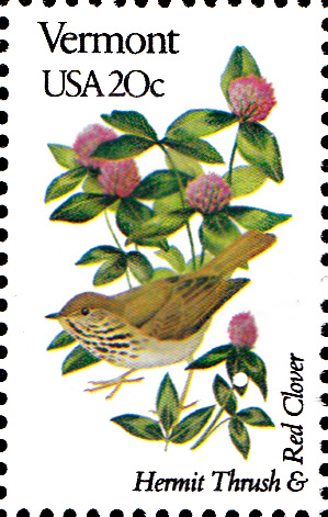In der Serie "Vögel und Blumen der 50 Bundesstaaten" erschien in den USA eine Marke, (MiNr 1576) die eine Einsiedlerdrossel (Catharus guttatus) zeigt. Die Marke gibt es in zwei Zähnungen: A = gez. K 11 1/4 und F = gez. L 10 3/4:11 1/4.