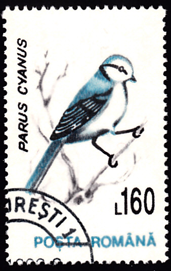 Diese Marke aus Rumänien (MiNr 4883) stellt uns eine Lasurmeise (Cyanistes cyanus, Syn.: Parus cyanus) vor.
