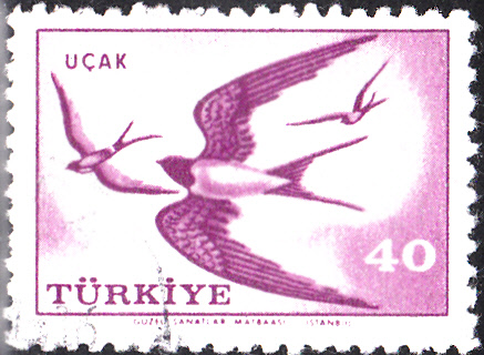 In einer Flugpostmarkenserie "Vögel" erschien auch in der Türkei eine Marke mit Rauchschwalben (Hirundo rustica).