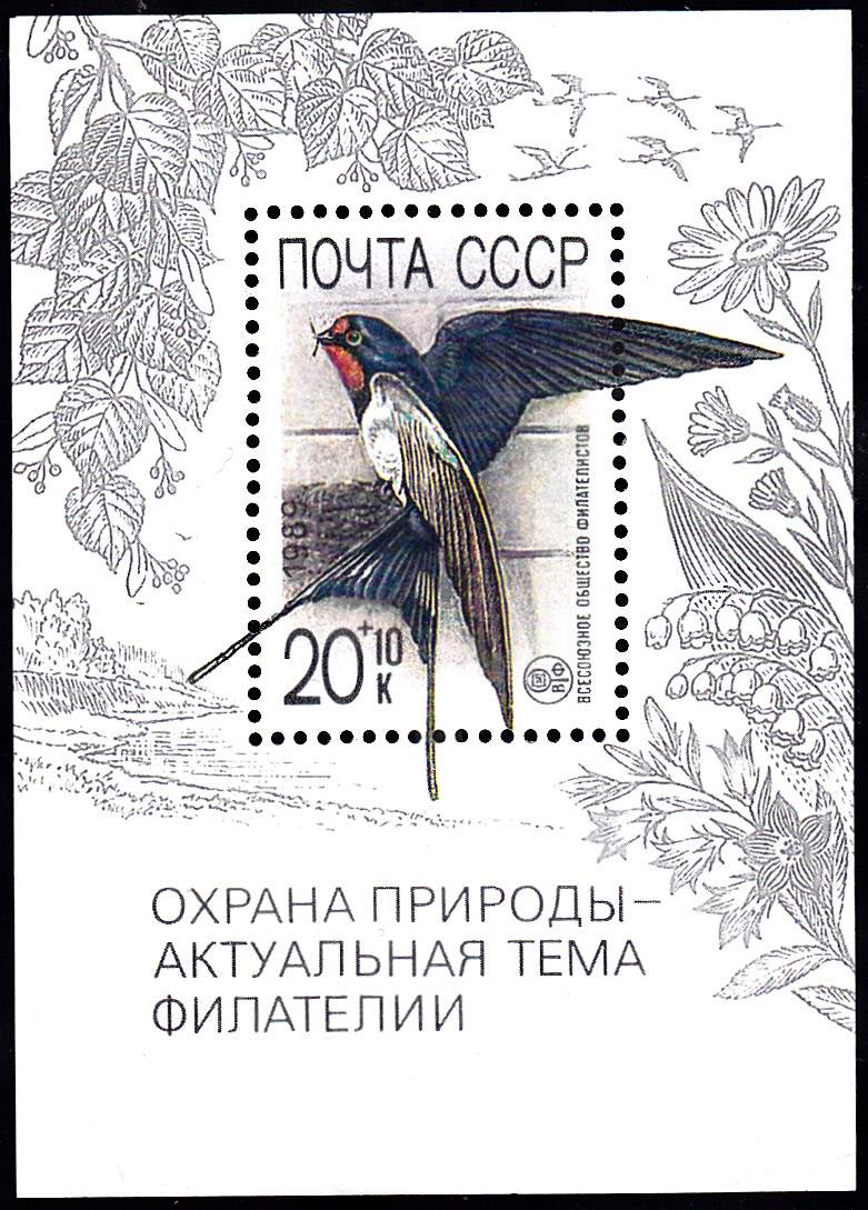 In der Sowjetunion ist 1989 eine Blockausgabe zum Thema "Blockausgabe: Naturschutz"(MiNr Block 211) erschienen. Auf der Marke (MiNr 6024) in diesem Block wird eine Rauchschwalbe (Hirundo rustica) abgebildet.