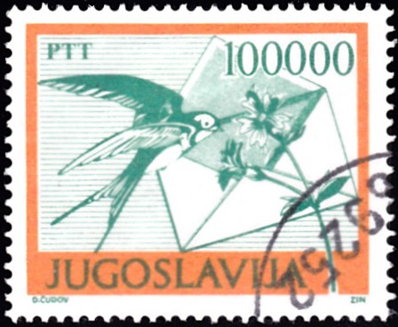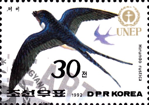 In einer Serie "Nordamerikanische Fauna" ist in den USA auch eine Marke (MiNr 1883) mit einer Rauchschwalbe (Hirundo rustica erythrogaster) erschienen. Auf der Marke ist eine Rauchschwalbe bei der Fütterung der Jungen zu sehnen.