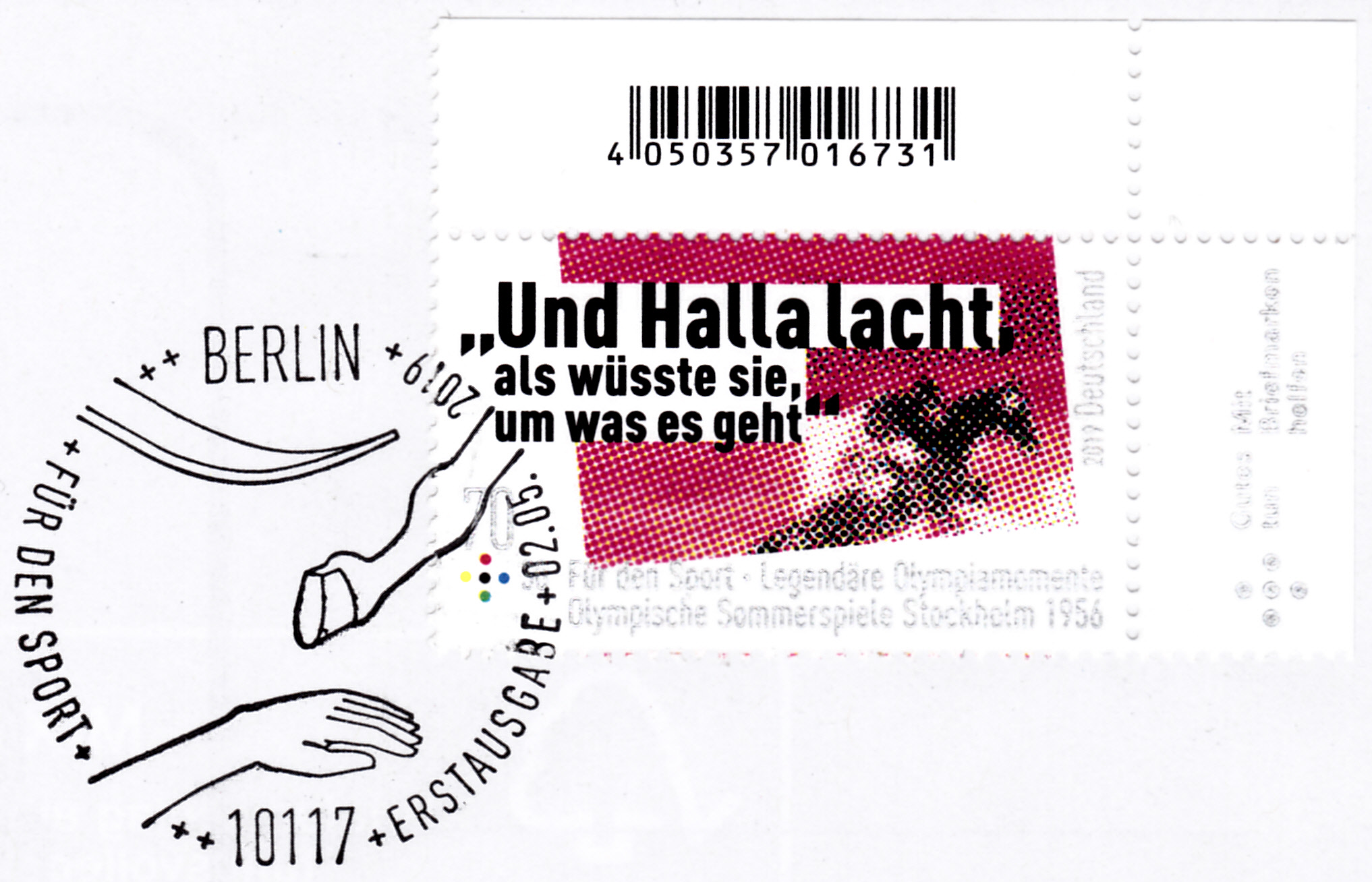Auf der Marke "Für den Sport" 2019 zu 70+30 Cent (MiNr 3460) wird an den Ausspruch "und Halla lacht, als wüsste sie, um was es geht." des Reporters Hans-Heinrich Isenbarth und an die beiden Siege im Einzel und mit der Mannschaft von Hans-Georg Winkler beim Springreiten bei den Olympischen Reiterspielen in Stockholm 1956 erinnert.