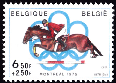Auf einer Marke zu den Sommerspielen 1976 aus Belgien (MiNr 1854) wird ein Springreiter gezeigt.
