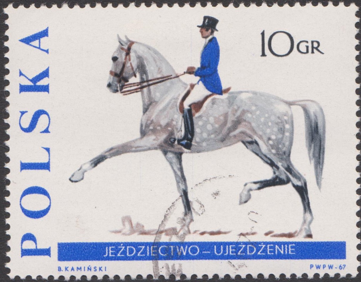 Hier passend zum Thema das Postwertzeichen Polen MiNr. 1740, das einen Dressurreiter der "Hohen Schule" zeigt: