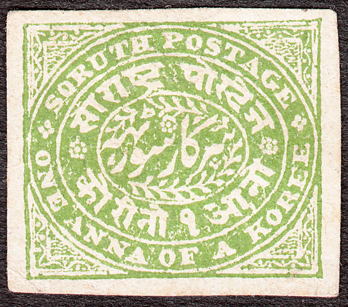 Foren-Übersicht Fragen und Diskussion Übersee Asien Indien Vertragsstaaten und Feudalstaaten Soruth = Sauraschtra MiNr. 6 - 1 Anna grün, ungezähnt