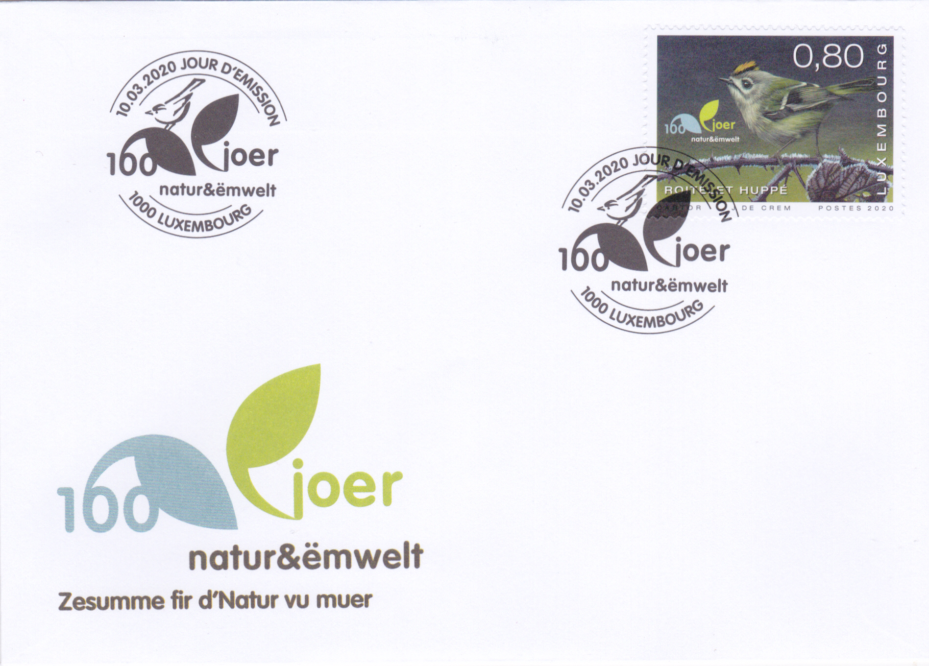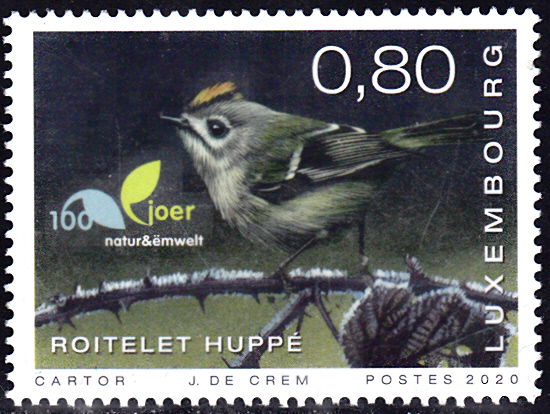 Zum Anlass 100 Jahre Naturschutzvereinigung "Natur&Ëmwelt" erschien in Luxemburg diese Marke (MiNr 2223) mit einem Wintergoldhähnchen (Regulus regulus).
