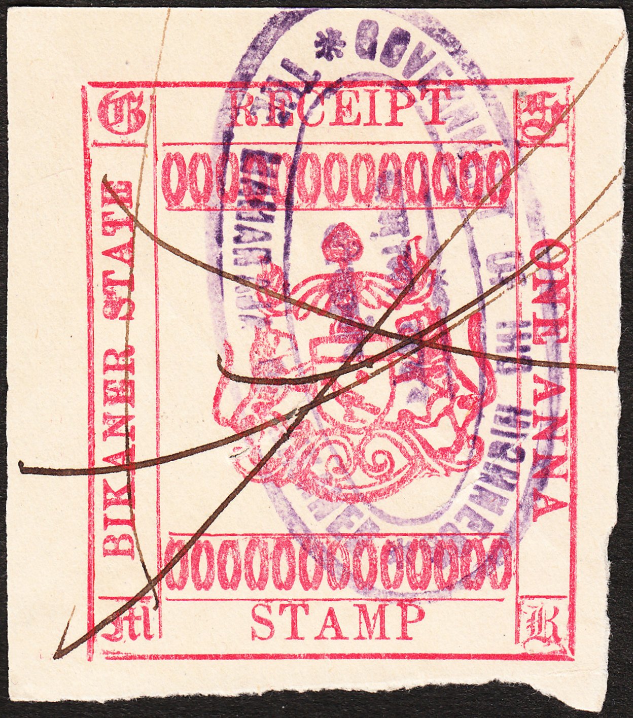 Foren-Übersicht Fragen und Diskussion Übersee Asien Indien Vertragsstaaten und Feudalstaaten Bikaner - Gebührenmarken RECEIPT Type 32 - 1 Anna rot