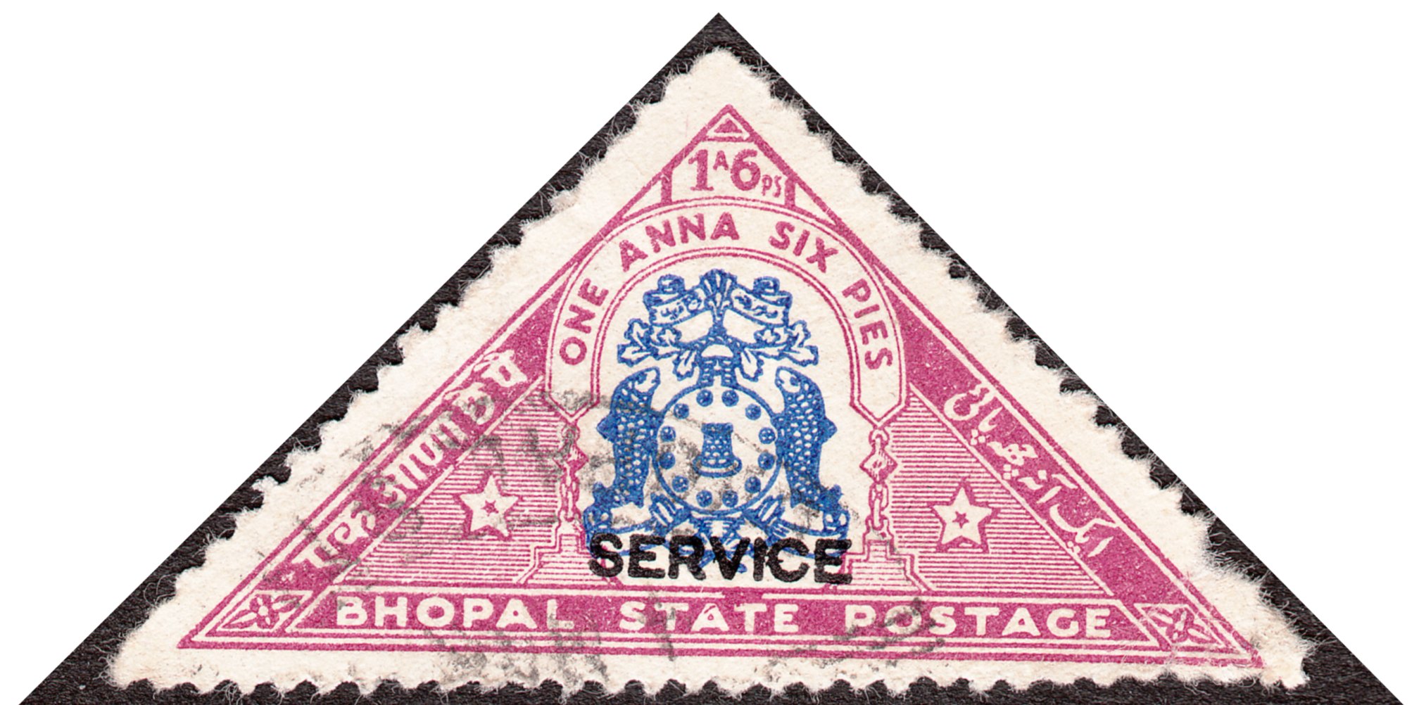 Von 1908 bis 1949 erschienen in Bhopal insgesamt 49 verschiedene Dienstmarken.