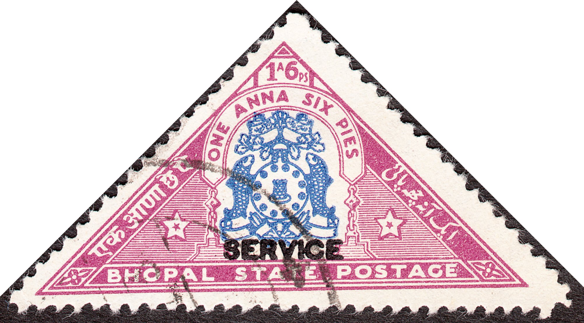Von 1908 bis 1949 erschienen in Bhopal insgesamt 49 verschiedene Dienstmarken.