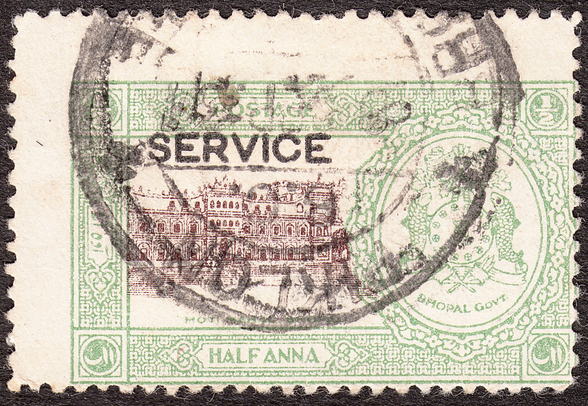 Von 1908 bis 1949 erschienen in Bhopal insgesamt 49 verschiedene Dienstmarken.