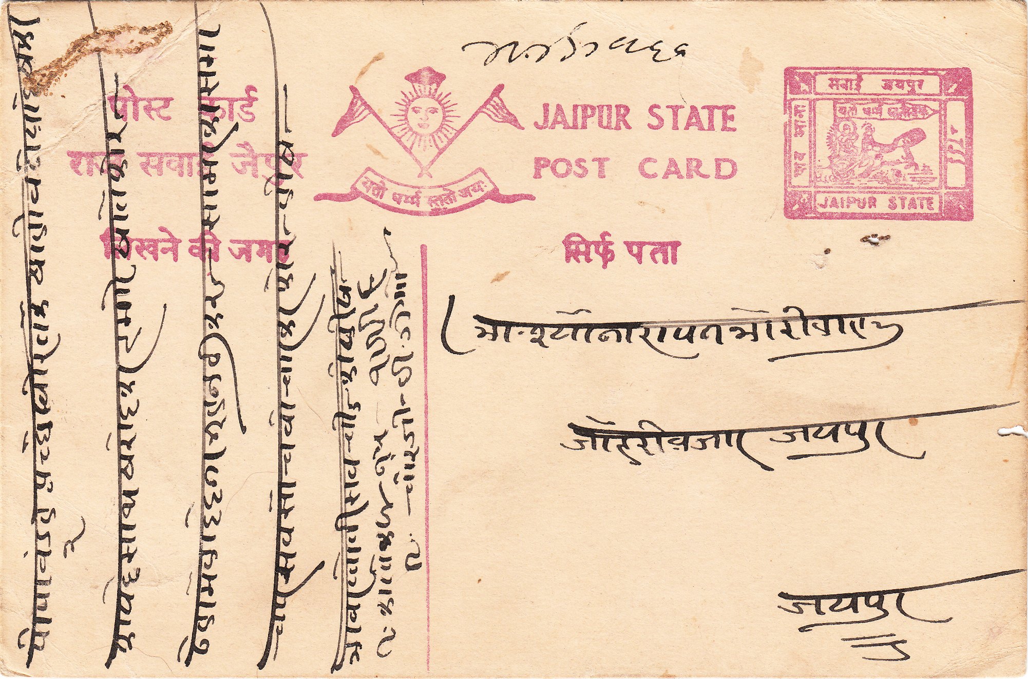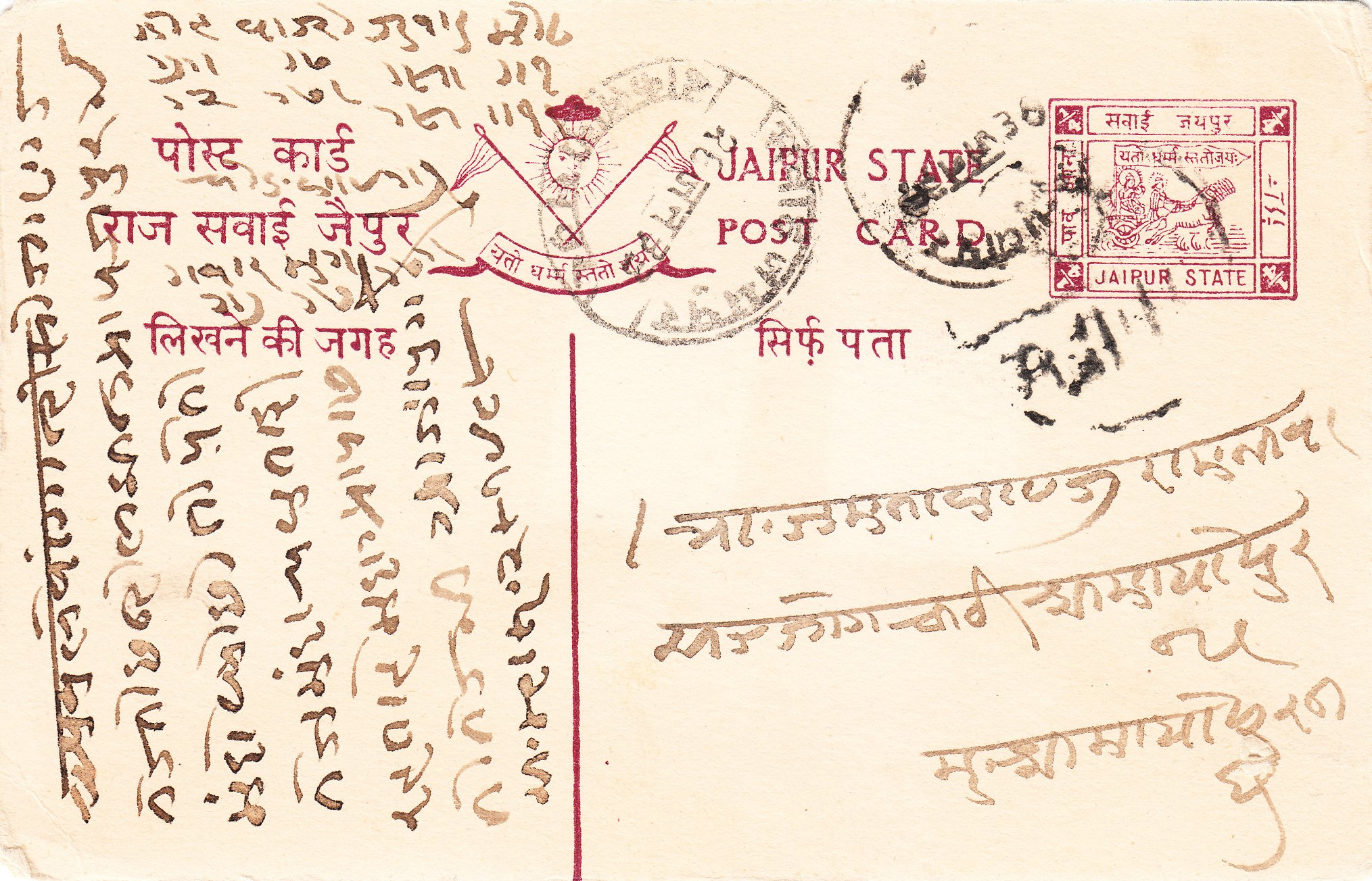 Ganzsachen und Ganzstücke sind und bleiben doch das Salz in der Suppe jeder Briefmarkensammlung, daher freue ich mich, Euch hiermit diese frisch erstandene Ganzsache aus Jaipur zeigen zu können.