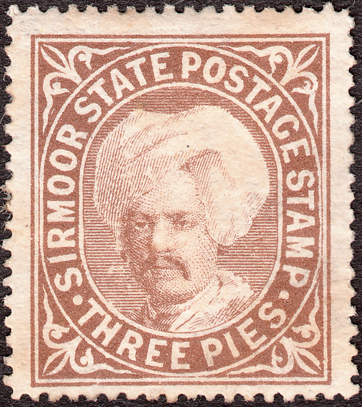 Foren-Übersicht Fragen und Diskussion Übersee Asien Indien Vertragsstaaten und Feudalstaaten Sirmur = Sirmoor MiNr. 3 - 3 Pies braun