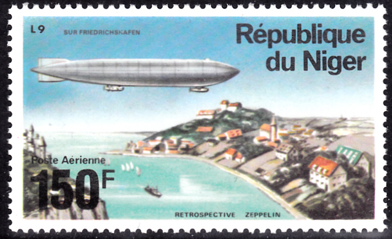 Eine Marke aus dem Niger (MiNr 524) zeigt L 9 über Friedrichshafen. Bei Michel wird fälschlicherweise der Name des Luftschiffes mit "LZ 9" angegeben.
