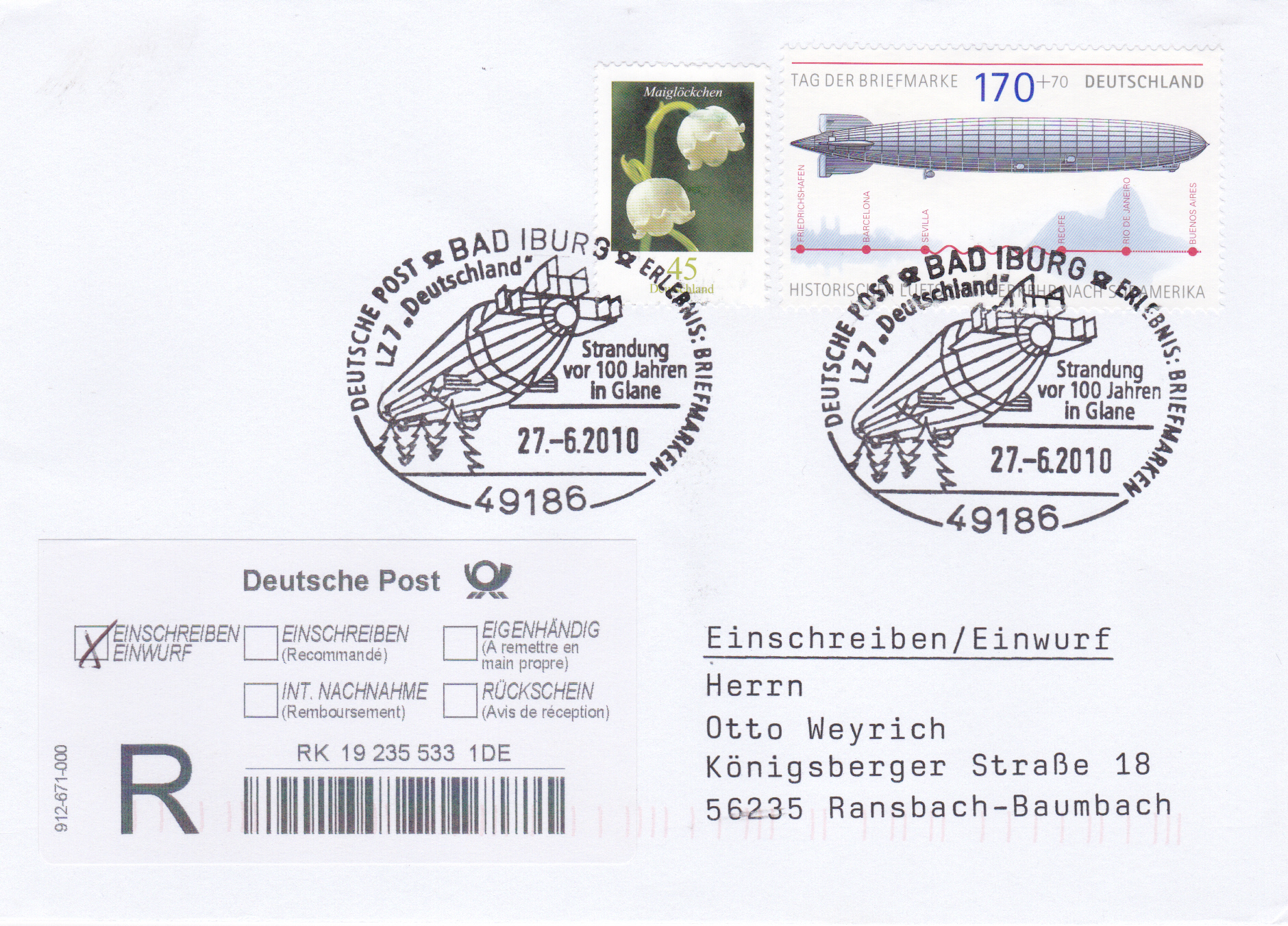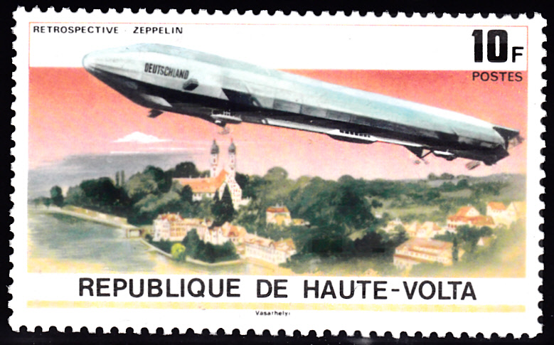 Auf einer Marke aus Obervolta (MiNr 625) wird LZ 7 über der Schlosskirche in Friedrichshafen gezeigt.