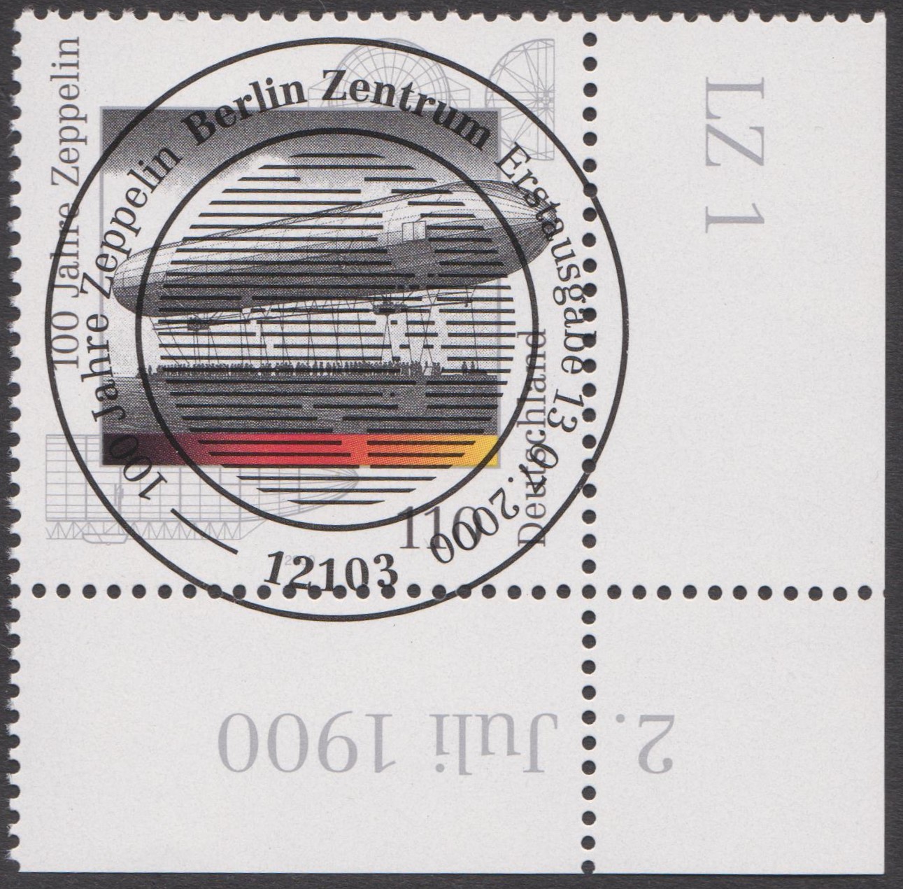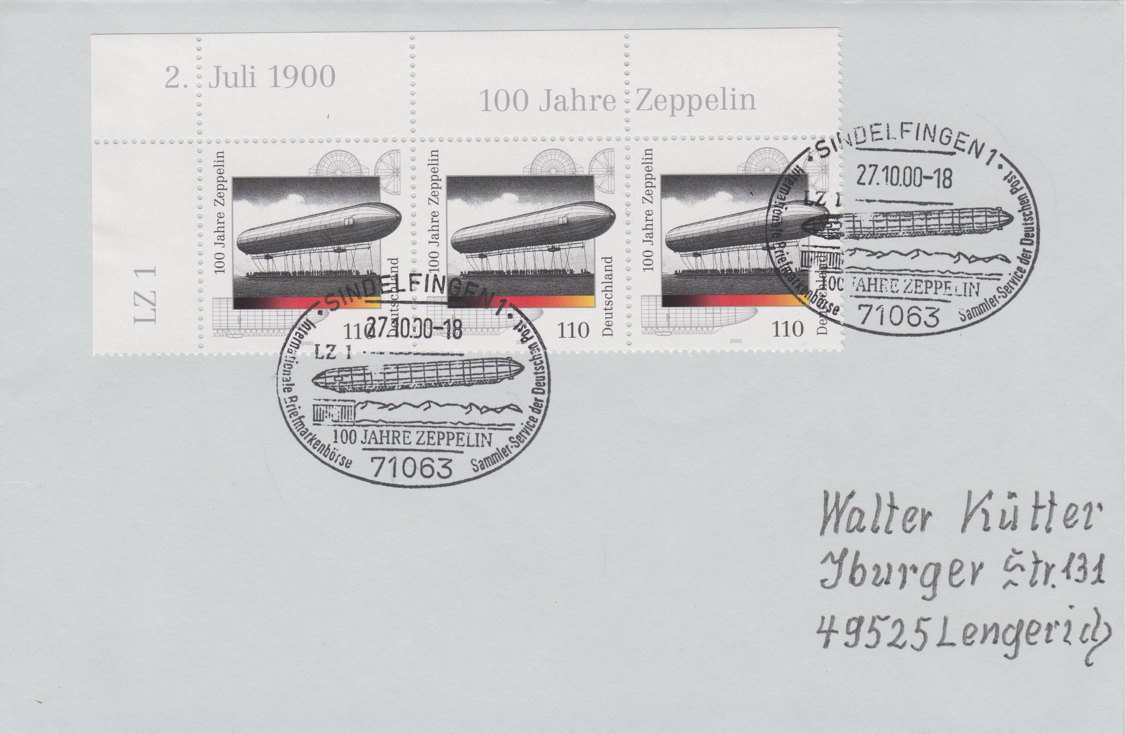 Ganzsache "100 Jahre Zeppelin" mit thematisch perfekt passendem Sonderstempel SINDELFINGEN 1 vom 27.10.2000: