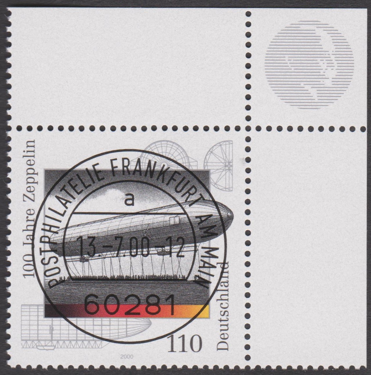 Bund MiNr. 2128, rechte obere Bogenecke des Zehnerbogens (= Feld 5) mit Ersttagsstempel POSTPHILATELIE FRANKFURT AM MAIN: