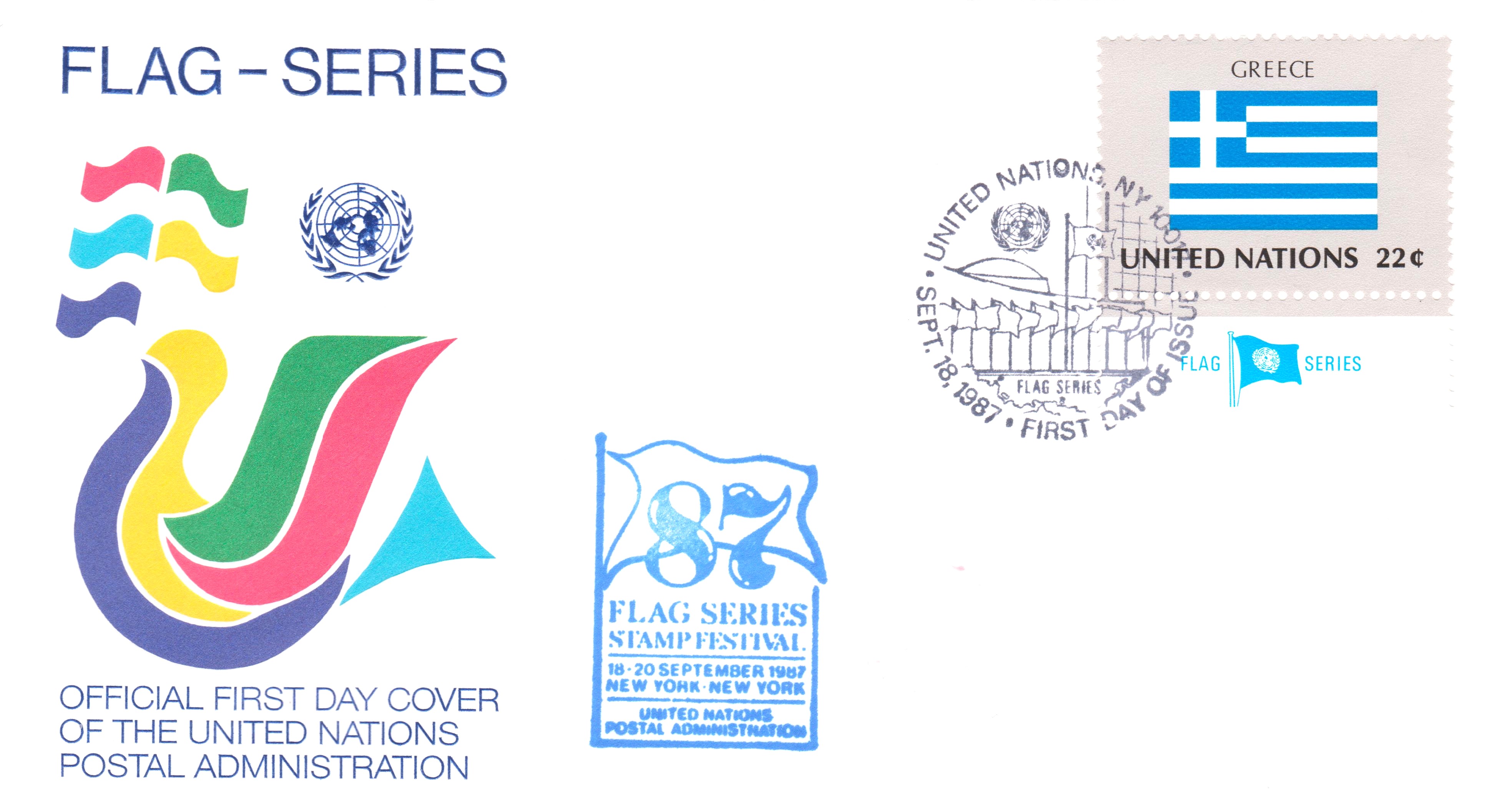 Vereinte Nationen MiNr. 532 zeigt die Flagge von GREECE = GRIECENLAND: