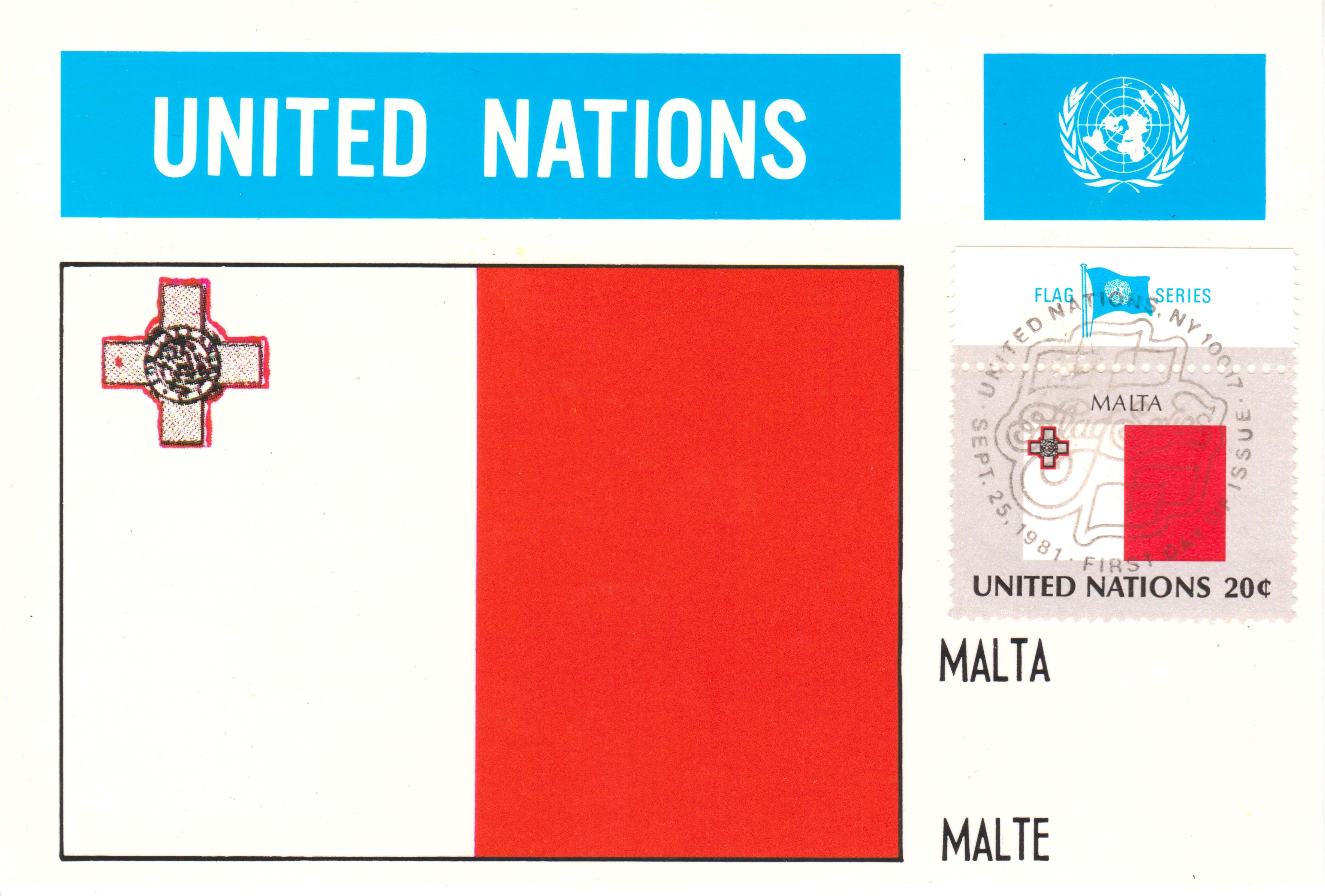 Vereinte Nationen MiNr. 377 zeigt die Flagge von MALTA: