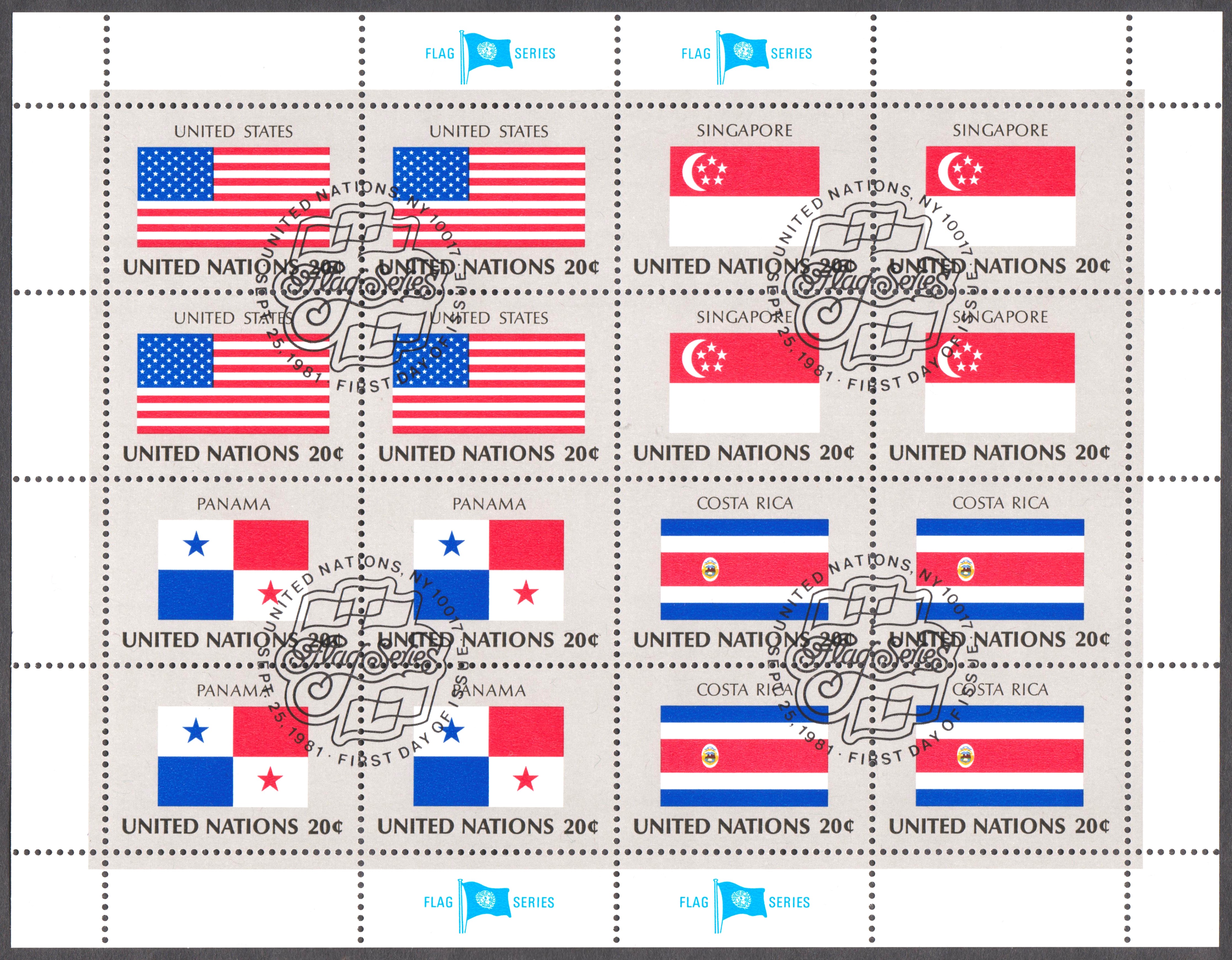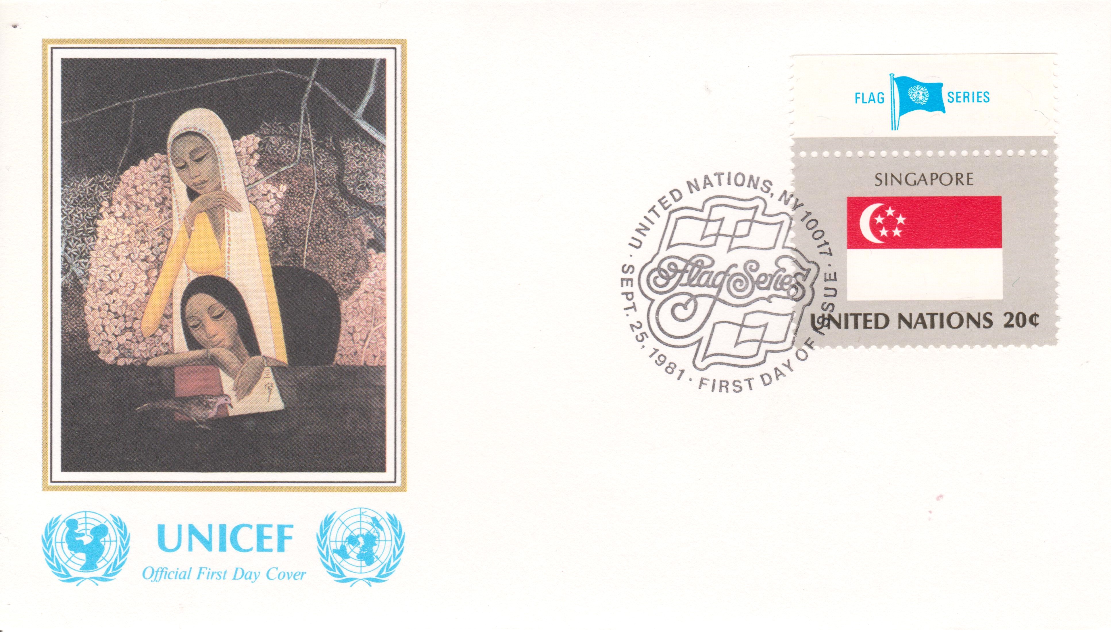 Vereinte Nationen MiNr. 386 zeigt die Flagge von SINGAPORE = Singapur: