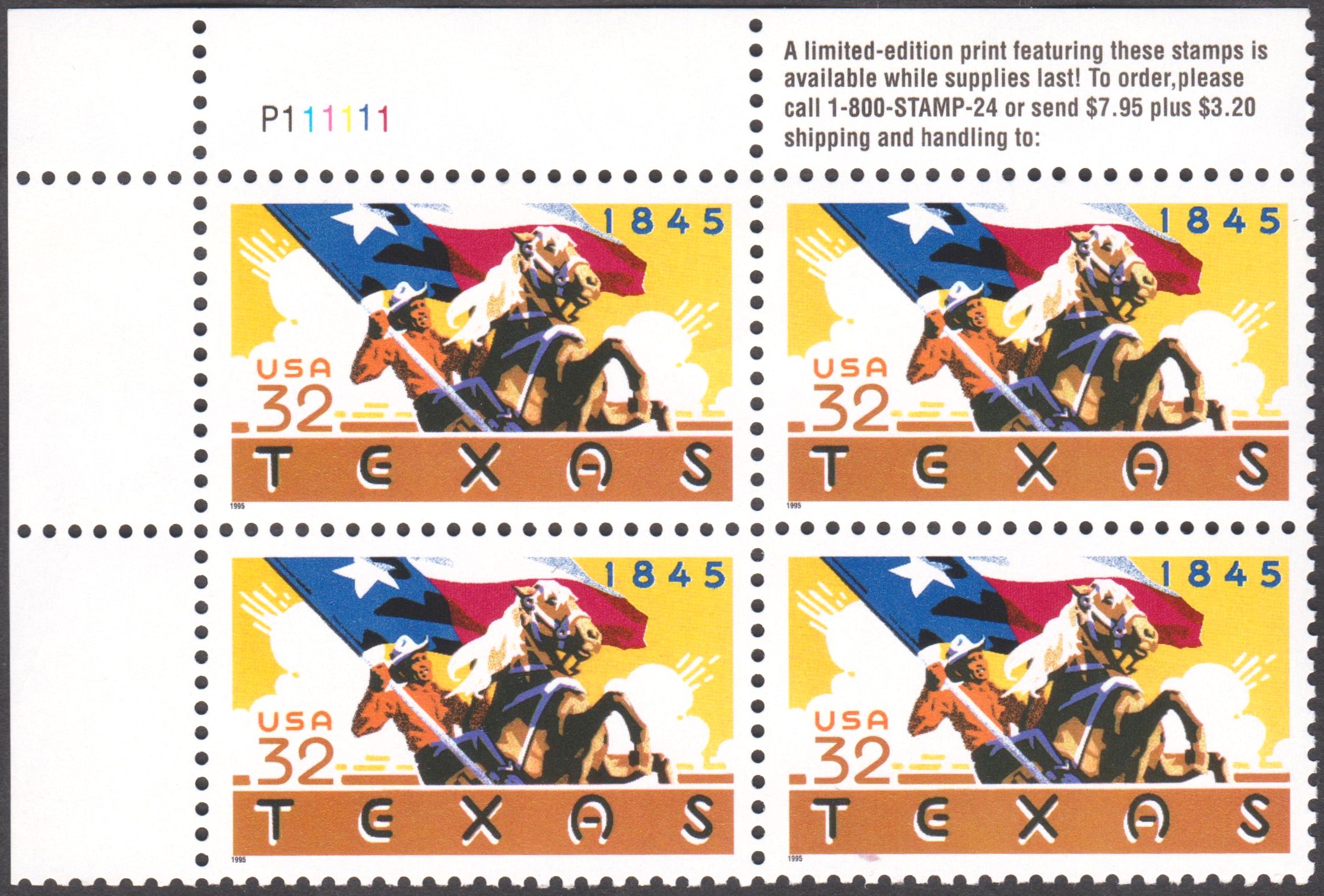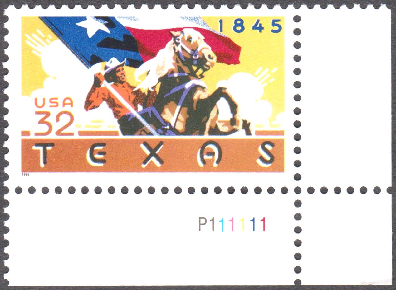 USA MiNr. 2575 erschien am 16.06.1995 und zeigt einen Reiter mit der texanischen Fahne: