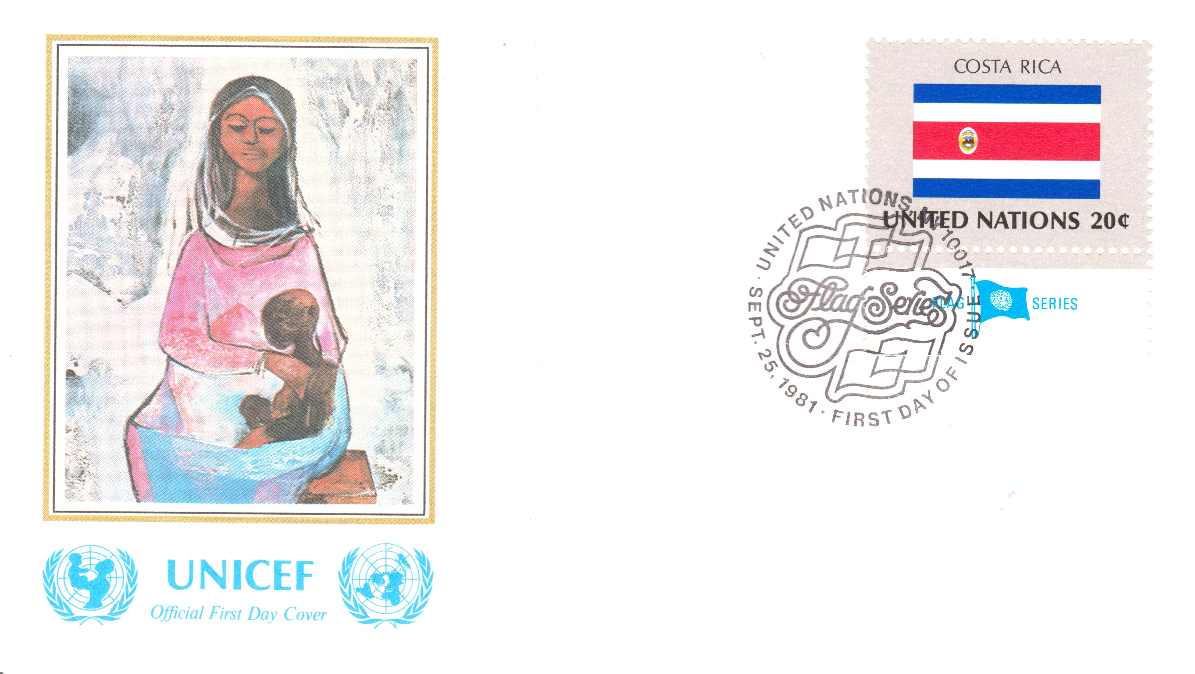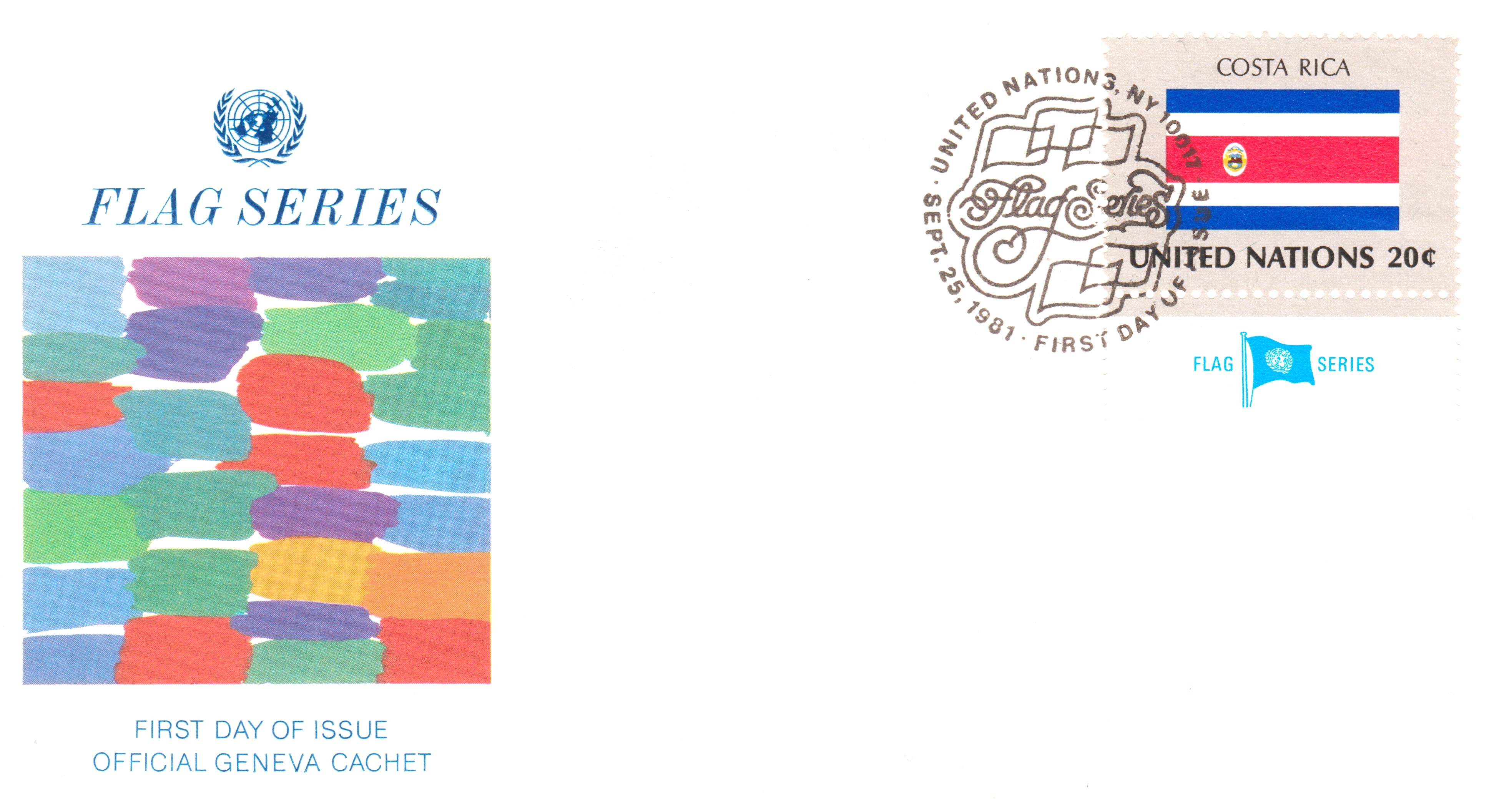 Vereinte Nationen MiNr. 388 zeigt die Flagge von COSTA RICA: