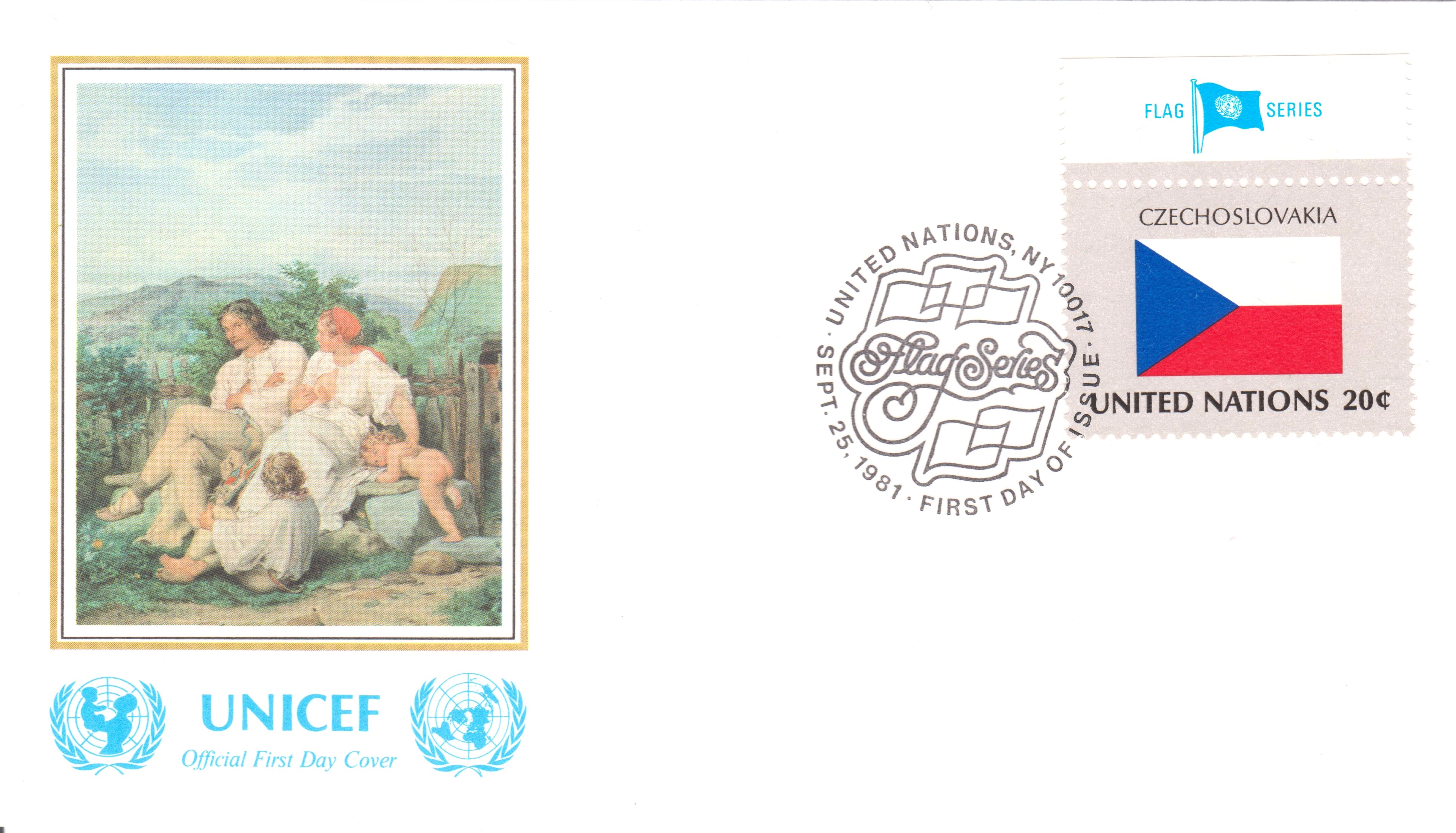 Vereinte Nationen MiNr. 378 zeigt die Flagge von CZECHOSLOVAKIA = Tschechoslowakei: