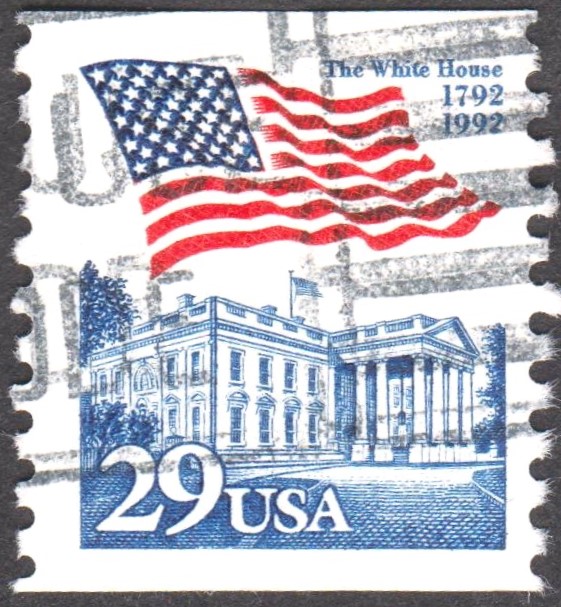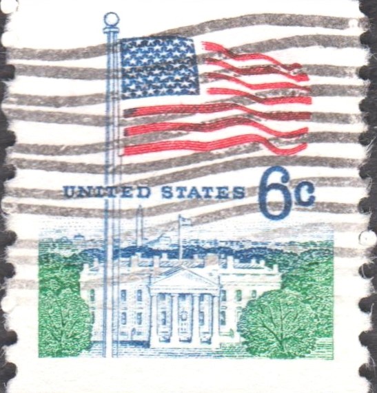 Auf dieser Freimarke, USA MiNr. 2213, flattert die Nationalflagge über dem Weißen Haus: