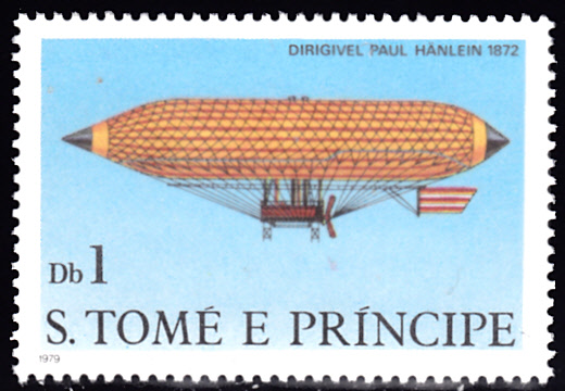 Auf dieser Marke aus Sao Tomé und Principe (MiNr 627) zeigt das Luftschiff Aeolus aus dem Jahre 1872.