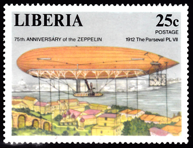 Das Luftschiff Parseval PL 7 ist auf diesem Block (MiNr Bl. 26 A) aus Dschibuti oben in der Mitte abgebildet.