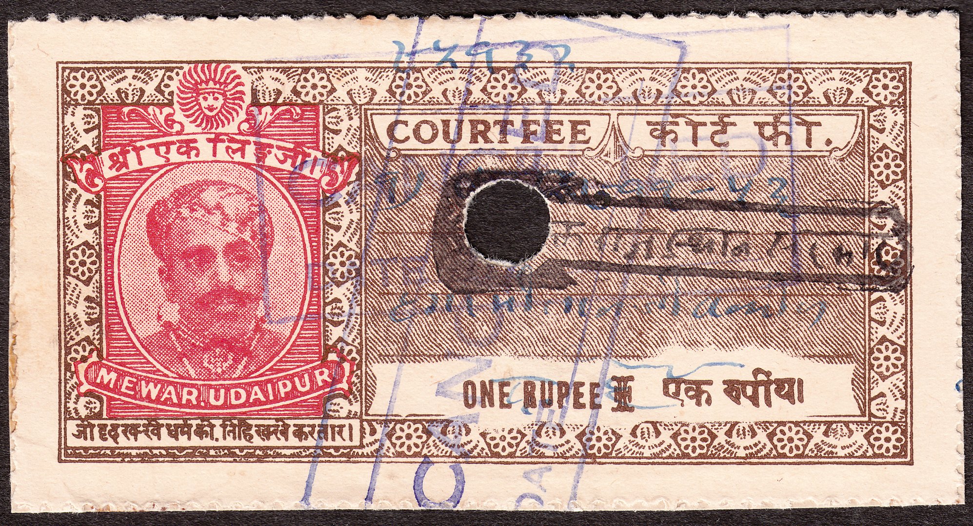 Foren-Übersicht Fragen und Diskussion Übersee Asien Indien Vertragsstaaten und Feudalstaaten Mewar - Gebührenmarken COURT FEE - ONE RUPEE