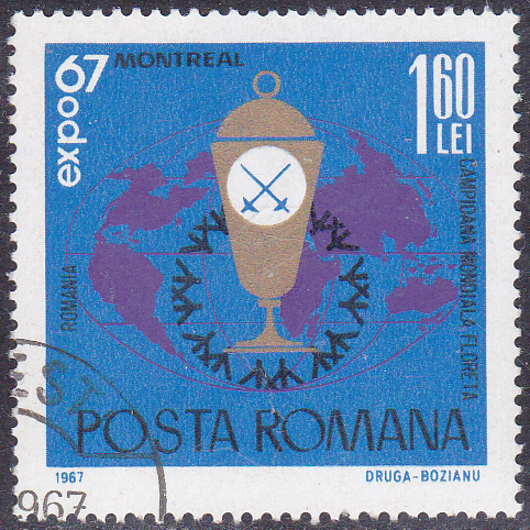 Dieses Postwertzeichen aus Kamerun zeigt das Logo der Expo 67: