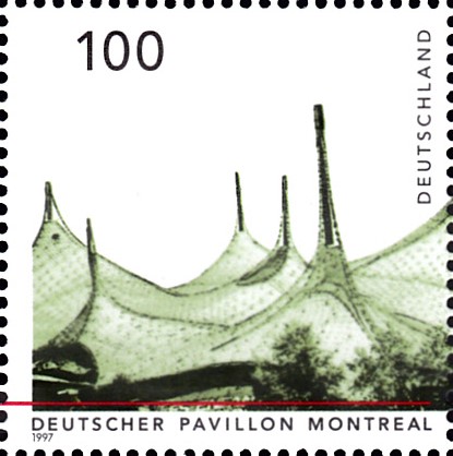 Bei der Weltausstellung 1967 in Montreal wurde der Deutsche Pavillion von den Architekten Frei Otto und Rolf Gutbrot gestaltet. In der Blockausgabe "Deutsche Architektur" erschien eine Marke (MiNr 1909) mit dem Deutschen Pavillon, Montreal von Frei Otto und Rolf Gutbrot.