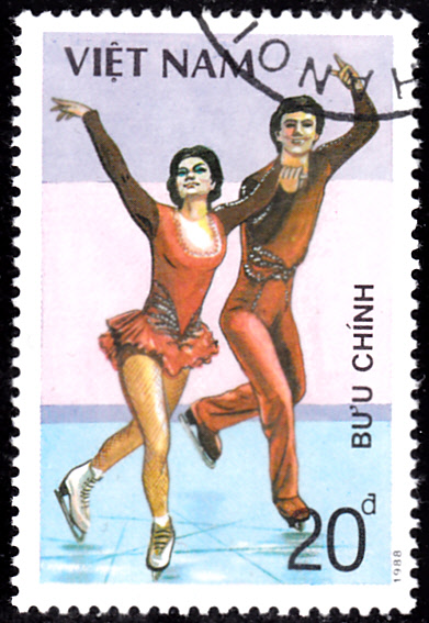 Aus dieser Serie aus Vietnamliegt mir eine weitere Marke (MiNr 2049) mit einem Eistanzpaar vor.
