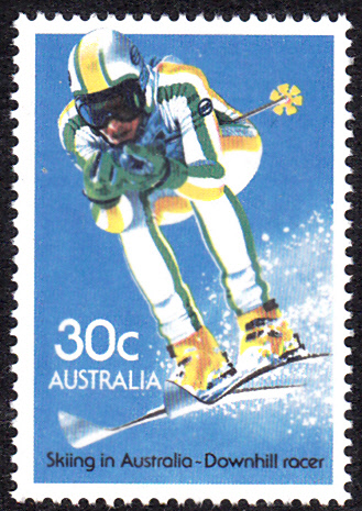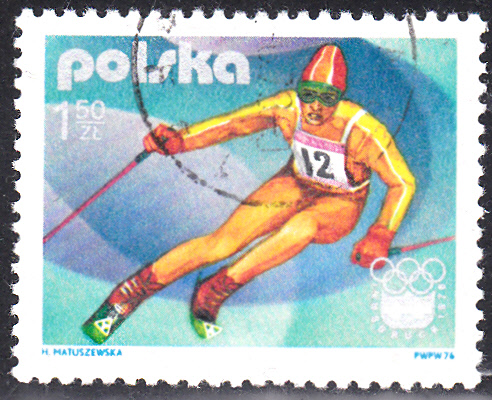 In der Serie zu den Olympischen Winterspielen 1976 in Innsbruck erschien in Liechtenstein diese Marke (Minr 637) mit der Abbildung eines Abfahrtsläufers: