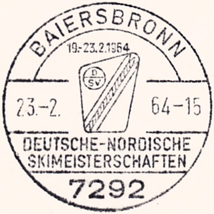 Handwerbestempel aus Baiersbronn vom 7.12.1963 zu den Deutschen Nordischen Skimeisterschaften 1964 ( 19.-23.2.1964).