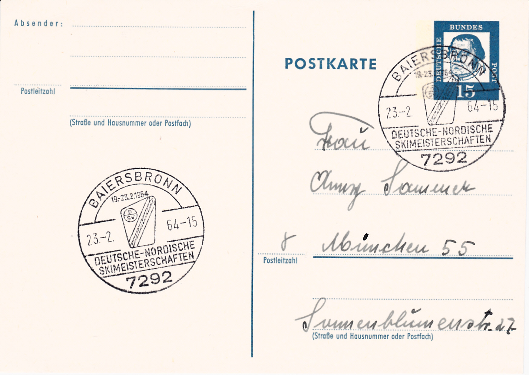 Dieser Handwerbestempel wurde auch noch am 23.2.1964 verwendet, wie dieser Abschlag belegt.