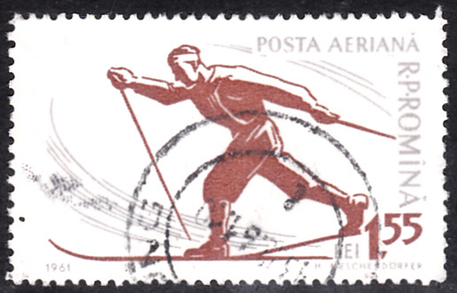 In Rumänien erschien diese Marke (MiNr 1957) mit einem Skilangläufer.